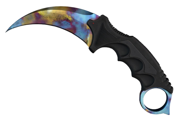 Karambit Case Hardened is known for its unpredictable blue, gold, and purple metallic patterns. Each knife is completely unique, and value is heavily determined by the amount and placement of blue on the blade, with “Blue Gem” patterns being the most legendary and expensive variants.