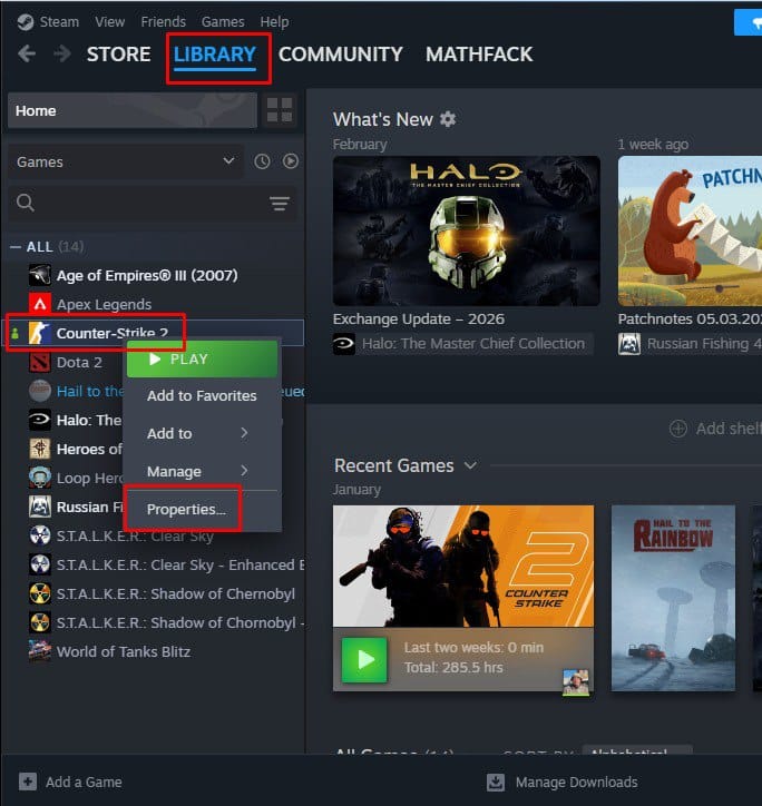 - Find Counter-Strike 2 and right-click on the game.