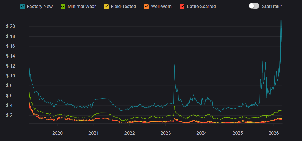 Since the "The Arms Deal" update, this skin is no longer generated through any game weapon cases, making it a limited edition. If you have this skin, you're lucky. It's a valuable investment.