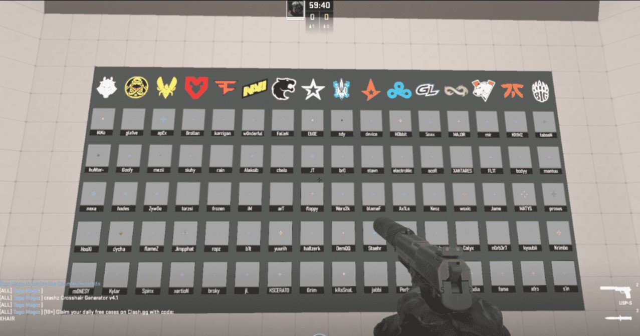 Another helpful feature of this map is the repository of crosshairs of professional players. You won't have to reinvent the wheel because, among 80 different variants, you may find the one that perfectly suits you.