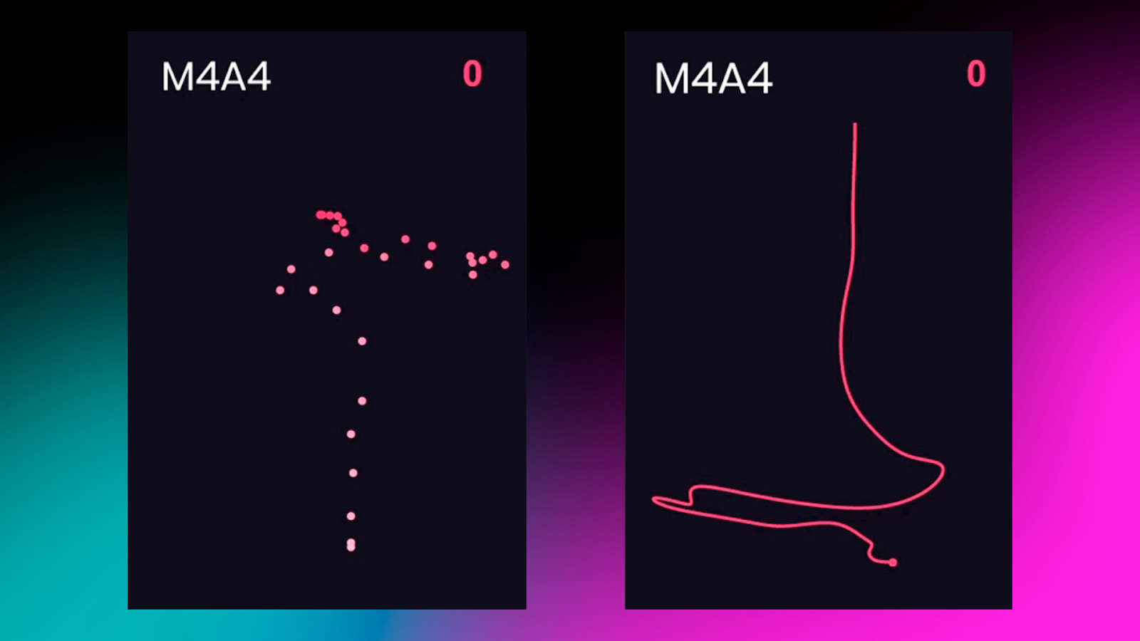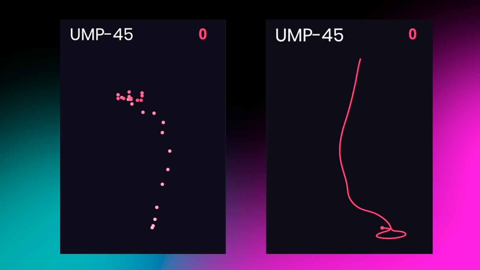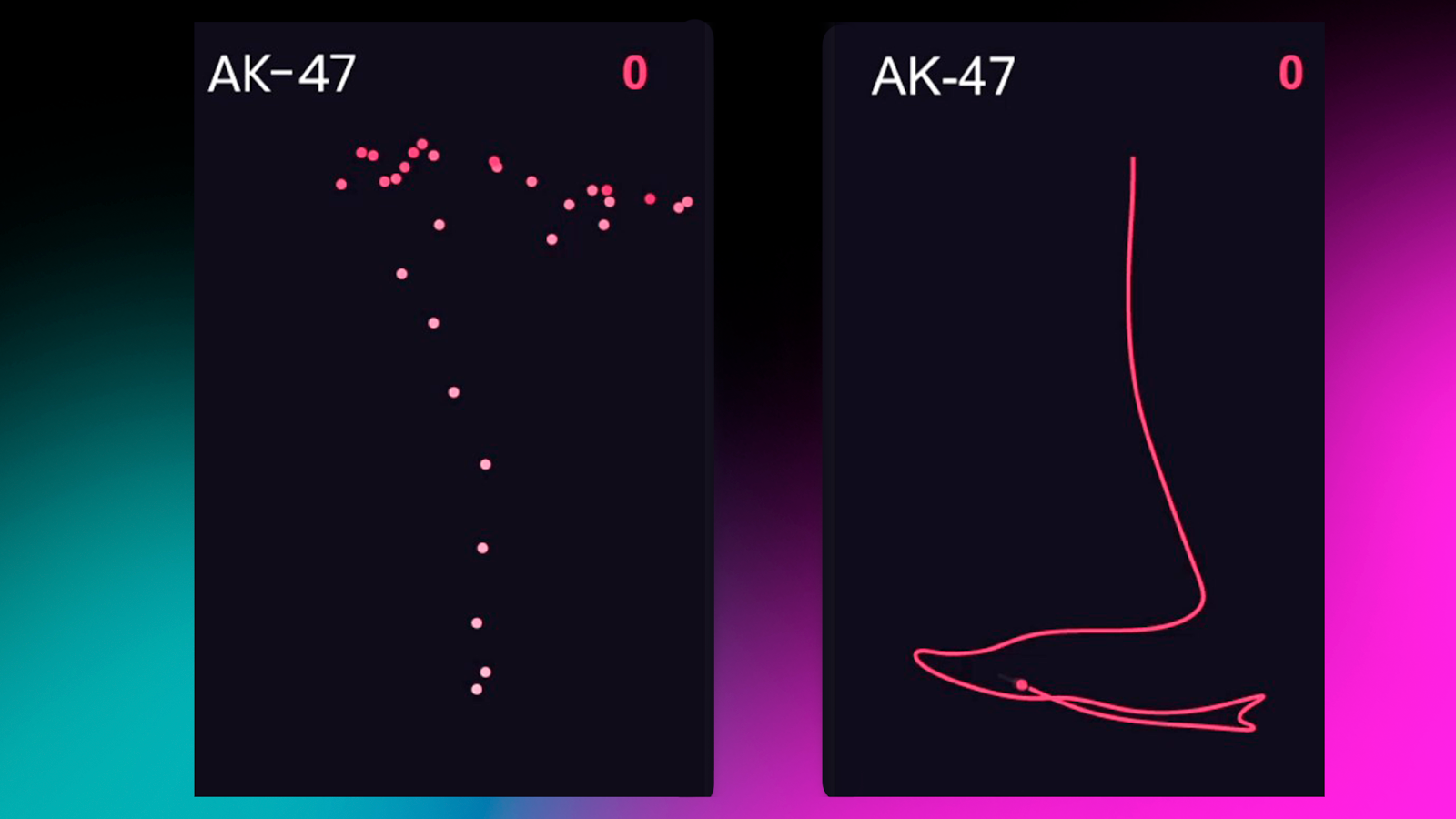 On the left in the images – the recoil pattern; on the right – the mouse movements used to compensate.