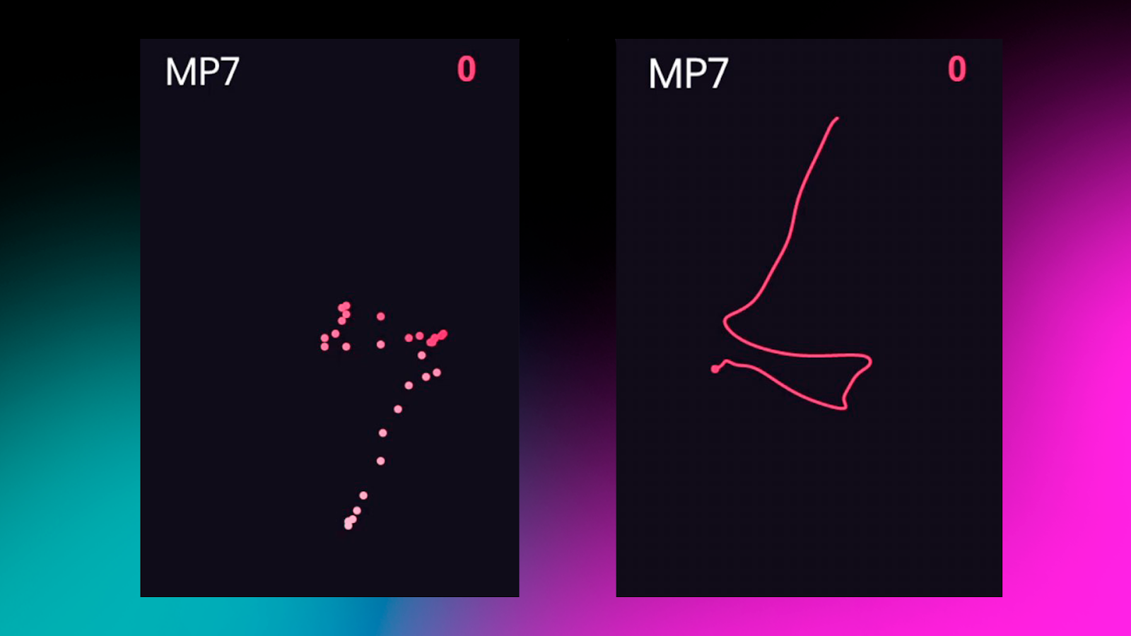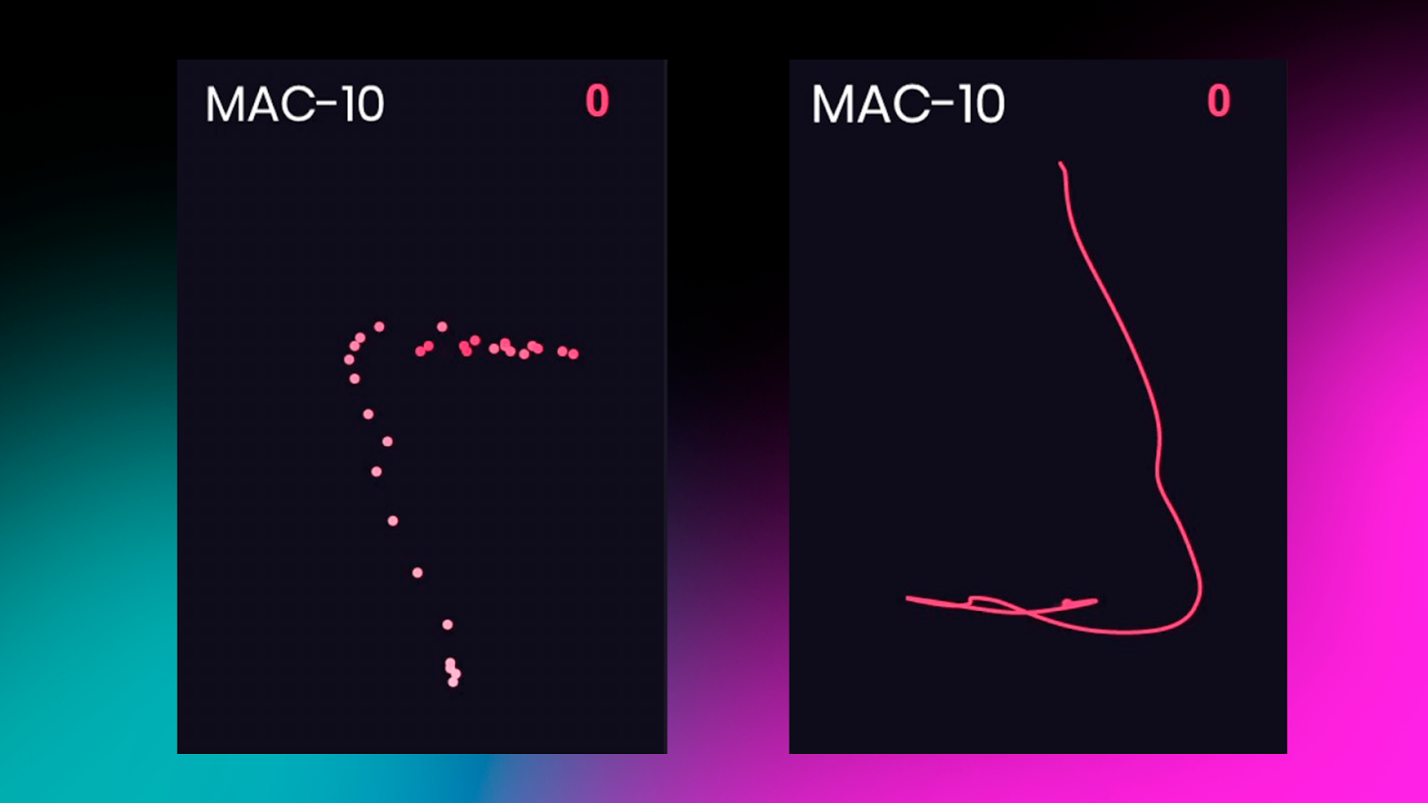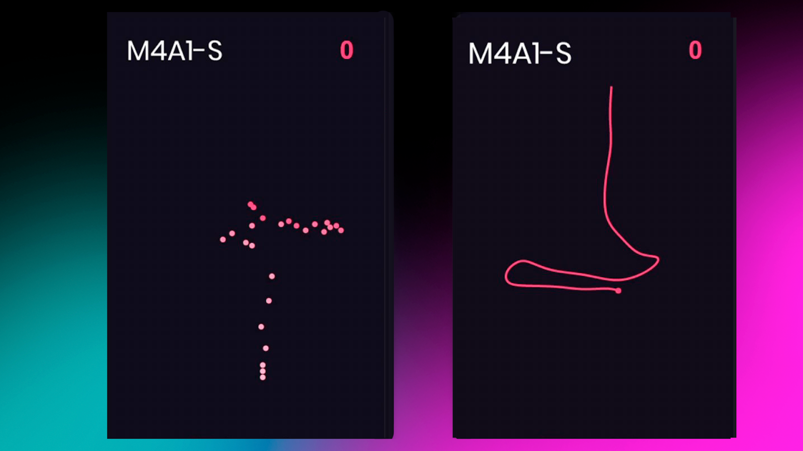 On the left in the images – the recoil pattern; on the right – the mouse movements used to compensate.