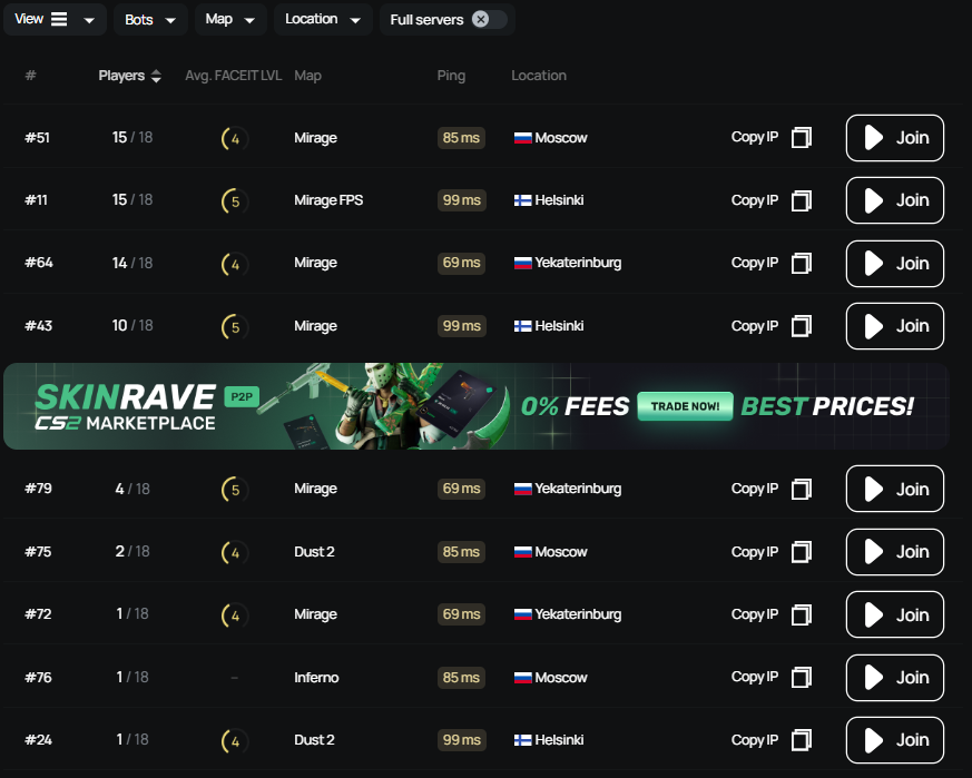 Выбор подходящего сервера играет не менее важную роль. Оптимальный вариант — с низким пингом, стабильным тикрейтом и достаточной плотностью игроков. На платформе xplay.gg доступно множество серверов по всему миру, что позволяет подобрать сервер с минимальной задержкой независимо от вашего региона.