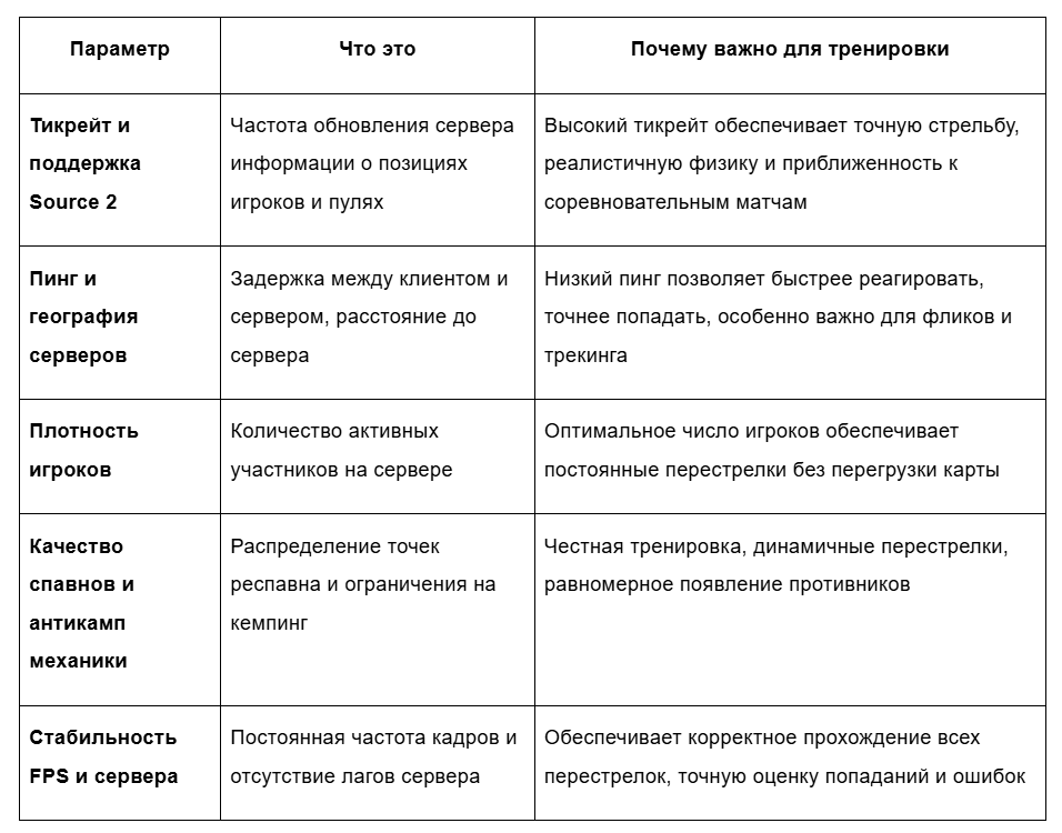 Выбор сервера с правильными техническими характеристиками критически влияет на эффективность тренировки аима и реакции. Вот ключевые параметры, на которые стоит обращать внимание: