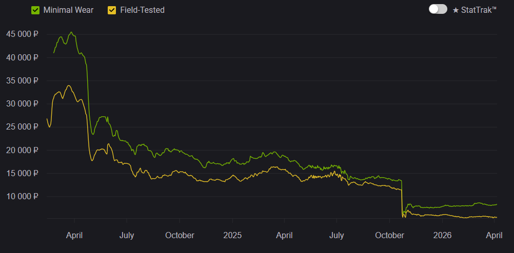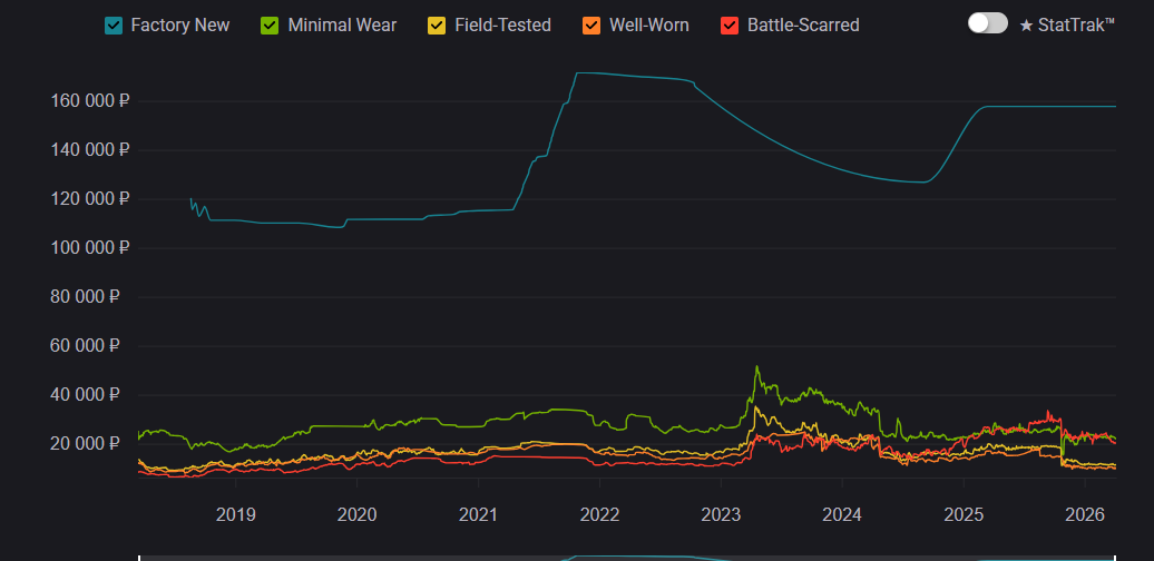 На момент выхода он получил умеренное внимание, но со временем стал более спокойным и бюджетным выбором. В 2026 году это стабильный low-profile скин, который ценится скорее за простоту и минимализм, чем за престиж.