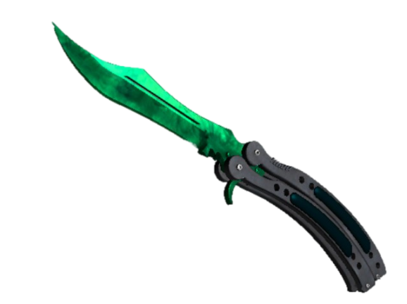 - Emerald: практически полностью ярко-зелёный клинок с минимальным количеством тёмных зон — самый редкий и дорогой вариант