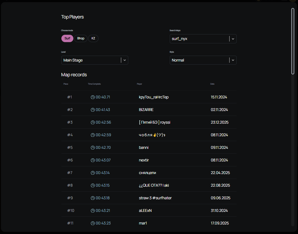 Если хочешь попасть на качественные серверы для серфа с проверенными таймерами и рейтингами, стоит обратить внимание на xplay.gg. Здесь карты всегда обновлены под CS2, есть удобный таймер и лидерборд, а сообщество активно помогает новичкам освоиться. Это лучший способ не просто кататься, а реально учиться и видеть прогресс.