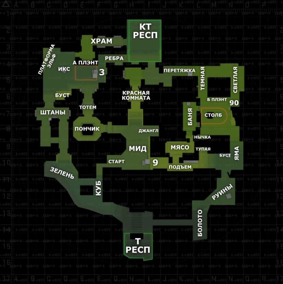 - Temple — ещё один путь от возрождения спецназа к A, часто используется для ротаций.