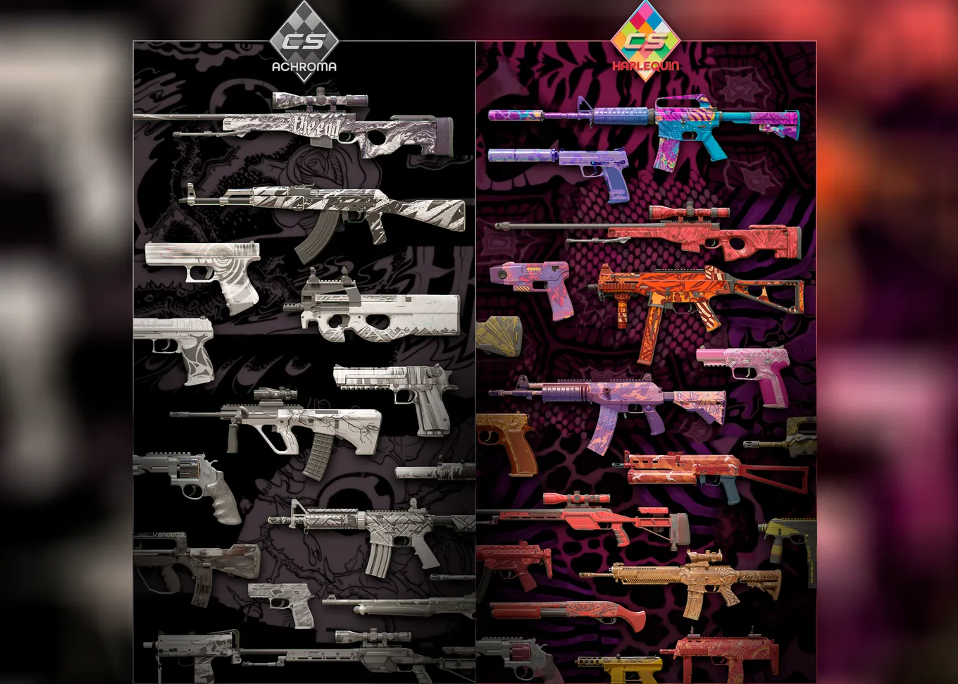 - Harlequin Collection — яркие и красочные скины с выразительными отделками от Valve.