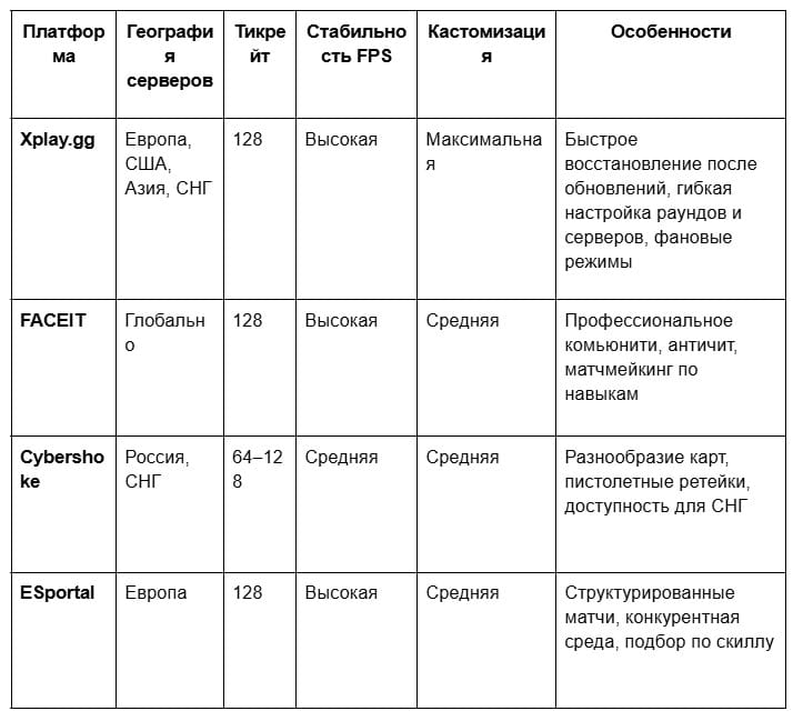 - Xplay.gg показывает самый быстрый отклик и высокую стабильность FPS, особенно после крупных обновлений CS2.