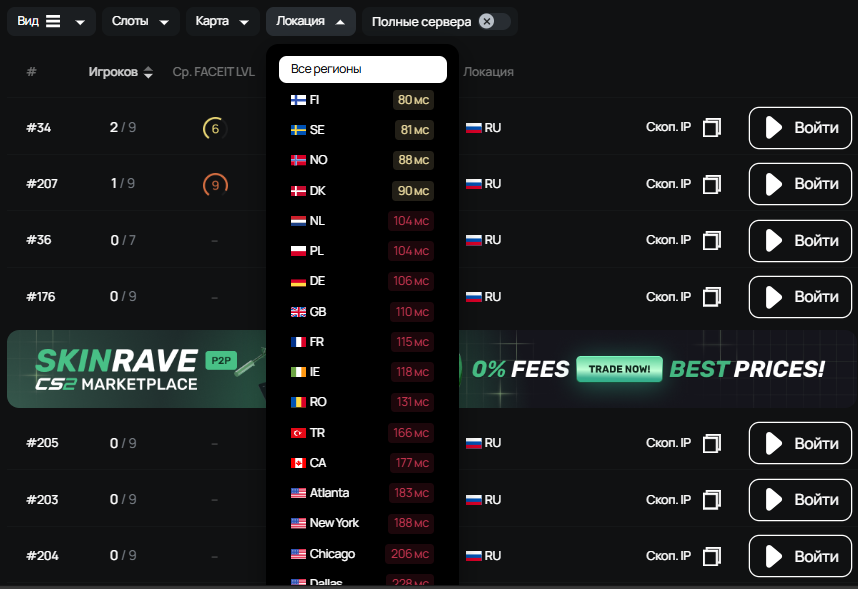 Пинг и геолокация серверов.Пинг показывает задержку между действиями игрока и их отображением на сервере. Чем ближе дата-центр физически к игроку, тем меньше задержка. Для динамичных режимов, где реакция идёт «на миллисекунды», стабильный низкий пинг становится ключевым фактором.