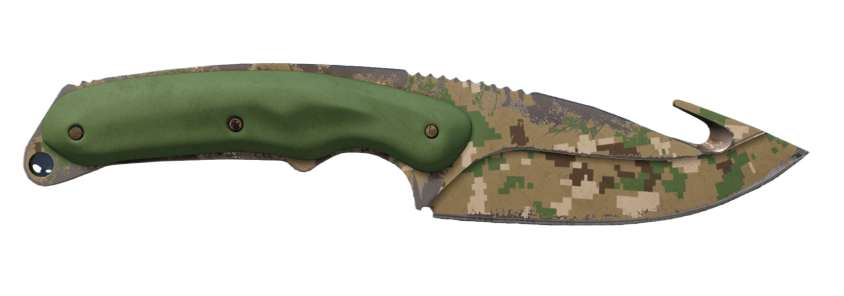 Gut Knife в расцветке Forest DDPAT — классический и универсальный нож, но скорее для смелых игроков: краска на нём стирается довольно агрессивно по мере износа, открывая металл под ней. Некоторым игрокам нравится этот грубый, «боевой» стиль за его характер. Тем не менее, команда xplay.gg рекомендует состояние Field-Tested как оптимальный вариант — нож всё ещё выглядит аккуратно и сохраняет свой фирменный камуфляж.