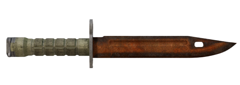 The Bayonet in Rust Coat is pure raw energy — no polish, no shine, just metal that looks like it’s been sitting in the rain for years and somehow got even cooler because of it. It’s knives in CS2 that only comes in Well-Worn and Battle-Scarred.